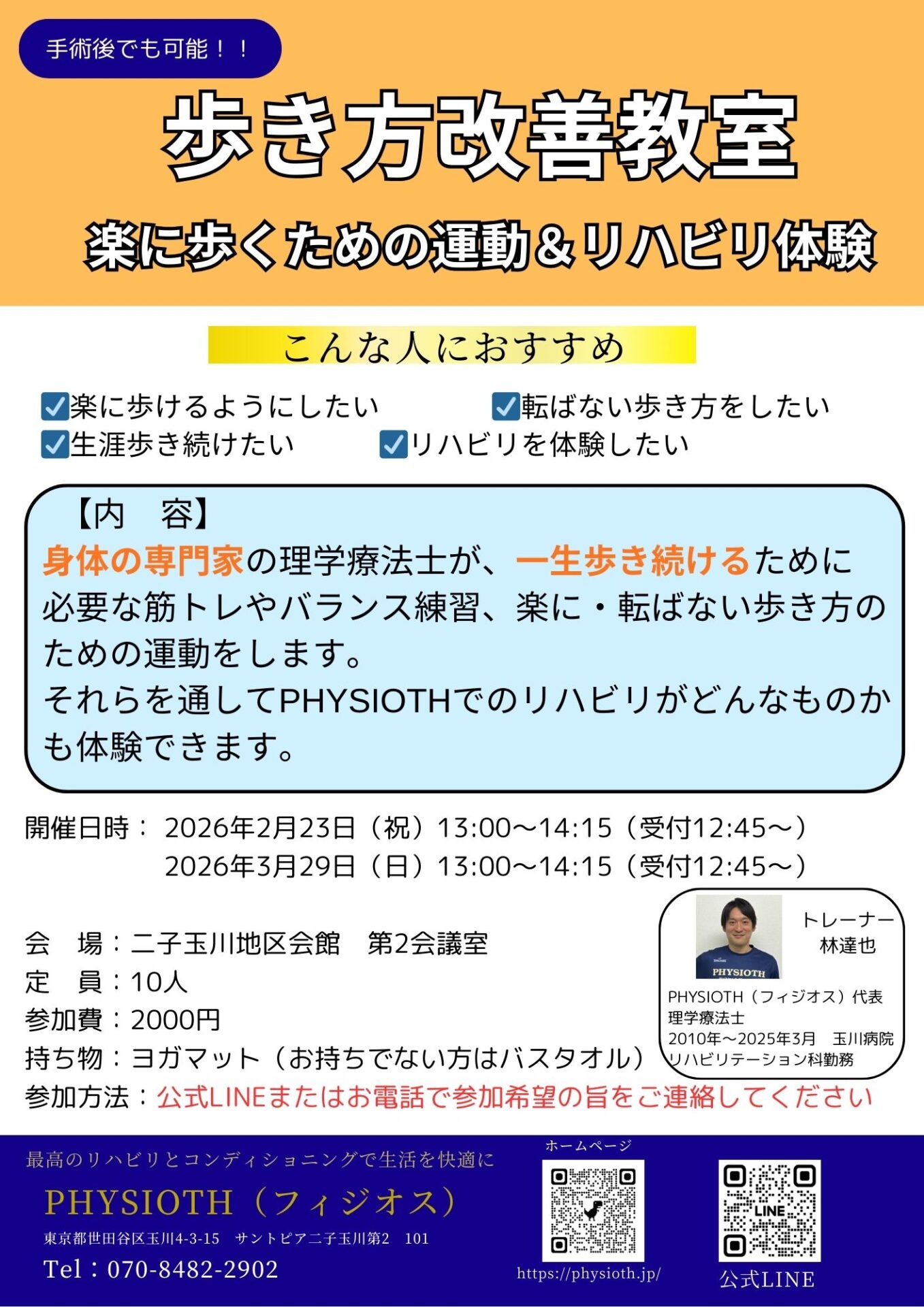 PHYSIOTHでは、体の様々な関節の動きを調整し、正しい歩き方や動き方のメカニズムを分かりやすく説明しながら練習します。